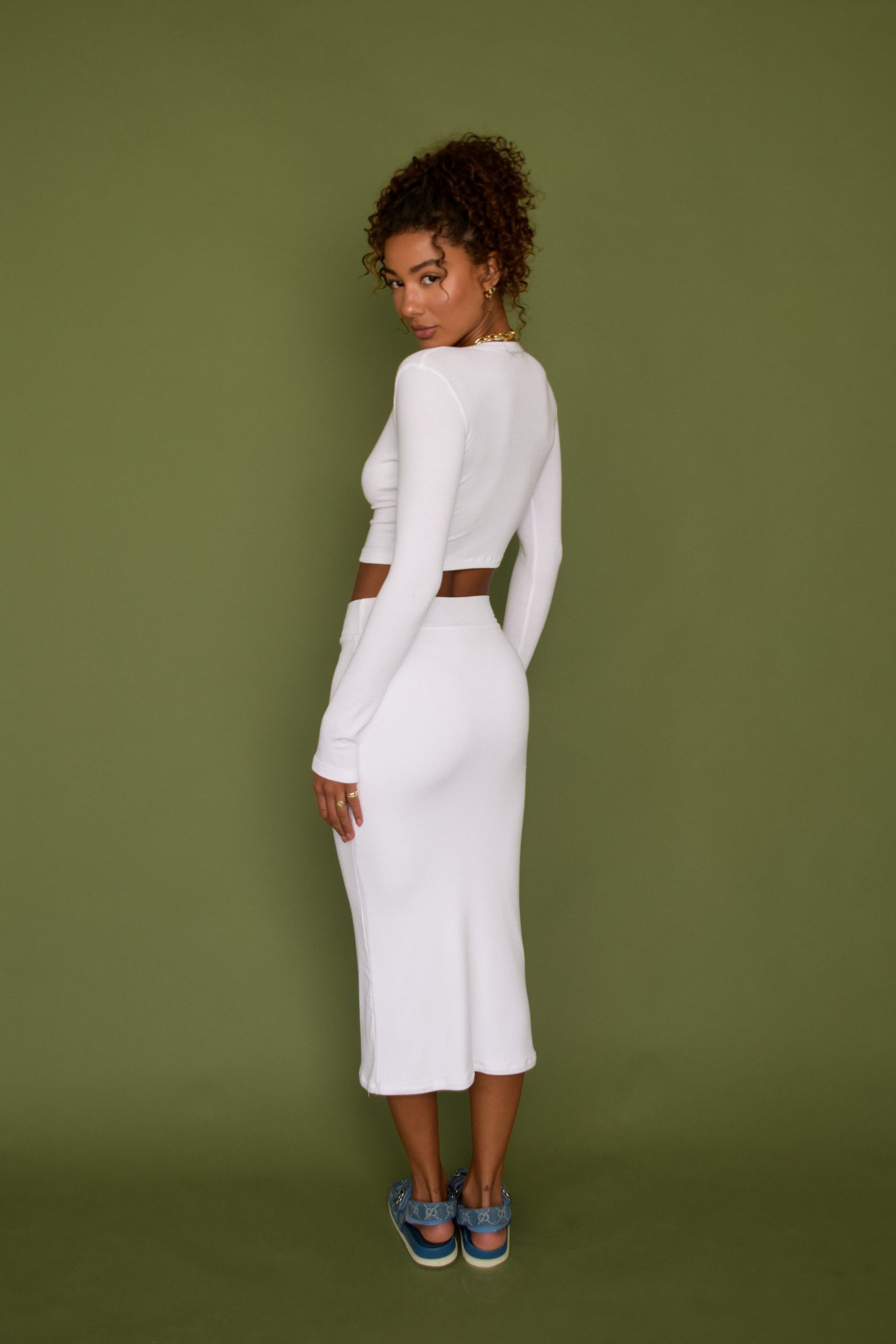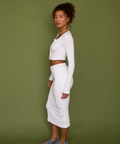 Made with super-soft ribbed fabric, Serena is the midi skirt you never knew you needed. Her seamless band sits high and won’t pinch, so you don’t have to sacrifice comfort for style. Serena is double-lined throughout so she won’t be sheer, and her flattering midi length looks great on everyone!