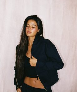 Made to be worn with the Lia Pant, Bryanna is the ultimate zip-up jacket. She’s cropped at the waist but her super soft baby pink velour means she’s still cozy. Plus, she’s like, really pretty.